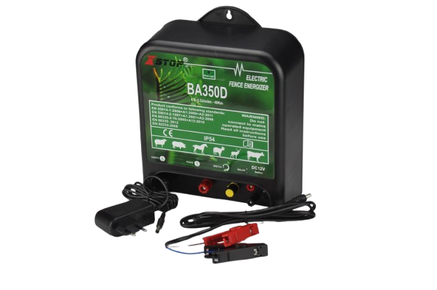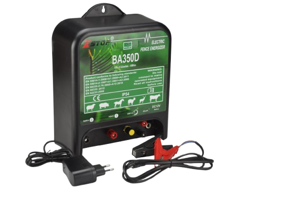 Povežite uređaj na izvor napajanja, preko adaptera 220v ili na kleme akumulatora 12v (BA 350D ima mogućnost i solarnog panela koji puni akumulator)  pri povezivanju na akumulator vreme rada uređaja zavisi od stanja baterije(akumulatora)