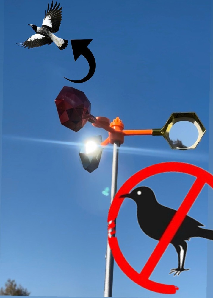 Rasterivač ptica – vetrenjača je efikasno uređaj dizajniran za zaštitu poljoprivrednih kultura, vrtova, terasa i drugih prostora od ptica koje prouzrokuju štetu. Ovaj repelent koristi pokretne delove vetrenjače koji proizvode buku i odražavaju svetlost, stvarajući nepovoljan ambijent za ptice. Vetrenjača se postavlja na otvorenom, gde njen rotirajući pokret i refleksija svetla stvaraju vizuelne i zvučne smetnje koje ptice doživljavaju kao pretnju , terajući ih da napuste prostor bez potrebe za upotrebom hemikalija ili mreža. Uređaj je lagan za montažu i održavanje, a zbog svog ekološkog pristupa, predstavlja sigurnu opciju za zaštitu životne sredine. Savršen je za upotrebu u vrtovima, voćnjacima, farmama, kao i na balkonima i terasama.