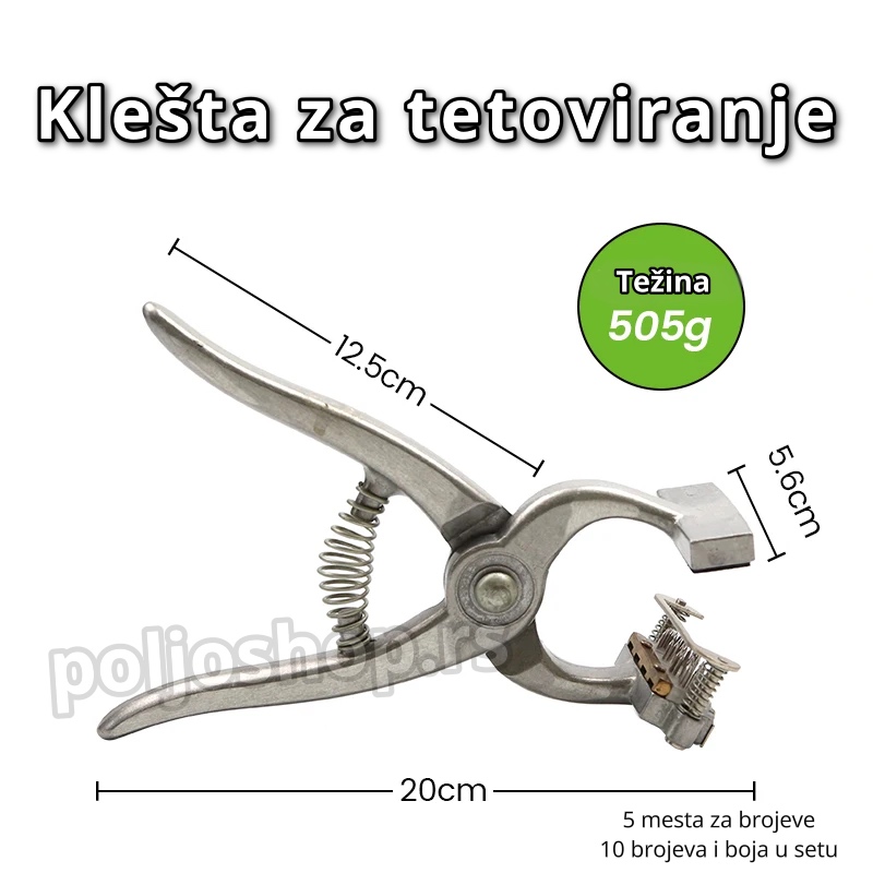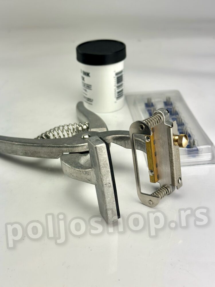 • Komplet sadrži klešta, 10 brojeva, mastilo