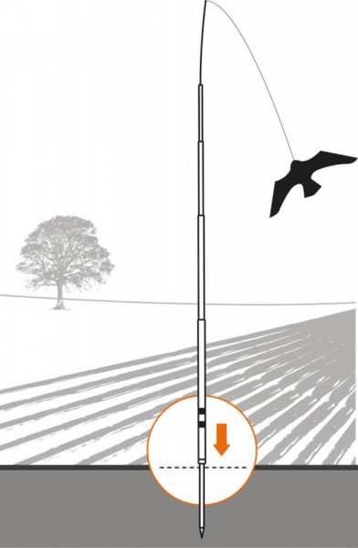 Rasterivač ptica na struni sa metalnim štapom dužine 6 metara predstavlja efikasno, ekološko i tiho rešenje za zaštitu poljoprivrednih useva, voćnjaka, vinograda i ribnjaka. Na vrhu savitljivog teleskopskog stuba nalazi se realistična silueta ptice grabljivice (u obliku zmaja), koja pomoću vetra lebdi i imitira let prave ptice.